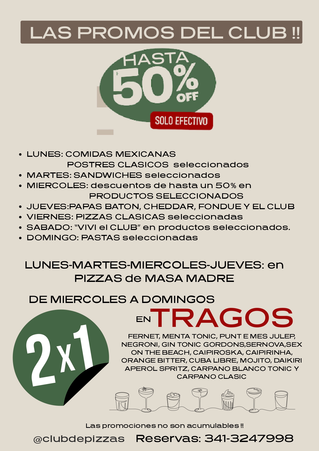 Lunes, Martes, Miercoles y Jueves 50%off